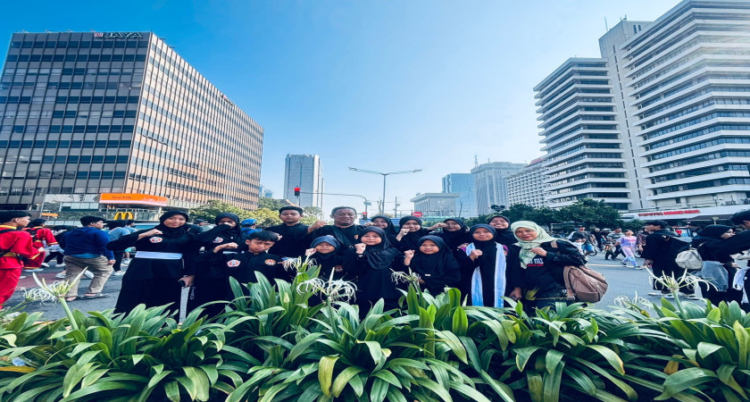 Jakarta (Humas MIN 9 Jakarta Selatan) — Semangat budaya membara sejak fajar menyingsing di jantung ibu kota dalam rangka memperingati Hari Ulang Tahun (HUT) ke-498 Kota Jakarta.Para pesilat dari berbagai wilayah berkumpul di Bundaran HI pada Minggu, 6 Juli 2025 pukul 06.00 WIB untuk mengikuti kegiatan yang bertajuk "Jakarta dalam Warna". Acara ini menjadi simbol kebangkitan budaya melalui penampilan Gerakan Jurus Tunggal Baku Satu yang menggema di jantung ibu kota.